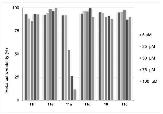 MTT test results with HeLa cell line for triazolylcinnolines 11,16.