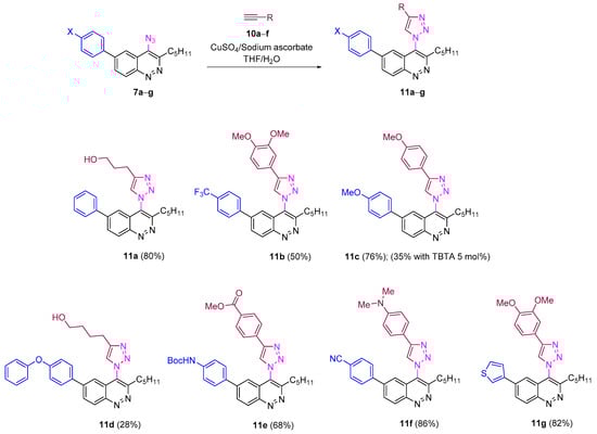 Reactivity of 4-azidocinnolines 7a−g in CuAAC.