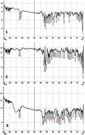 FT-IR spectra of Sn(IV) complexes 1–3.