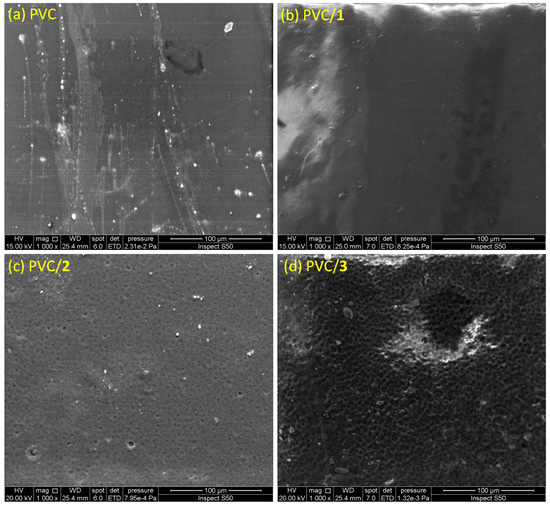 2.6. Scanning Electron Microscopy (SEM) of PVC Films