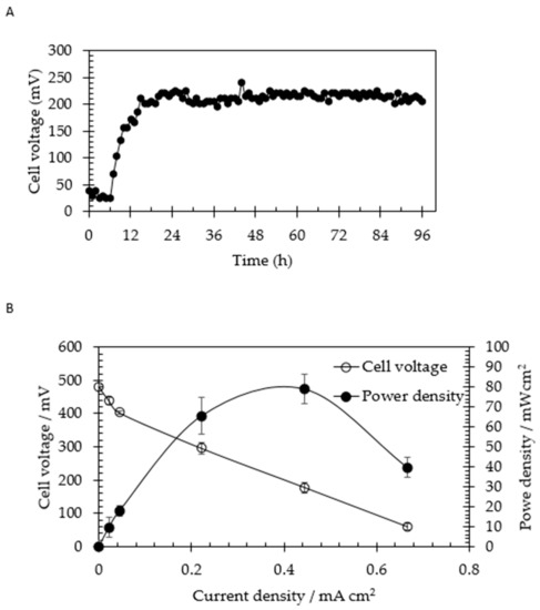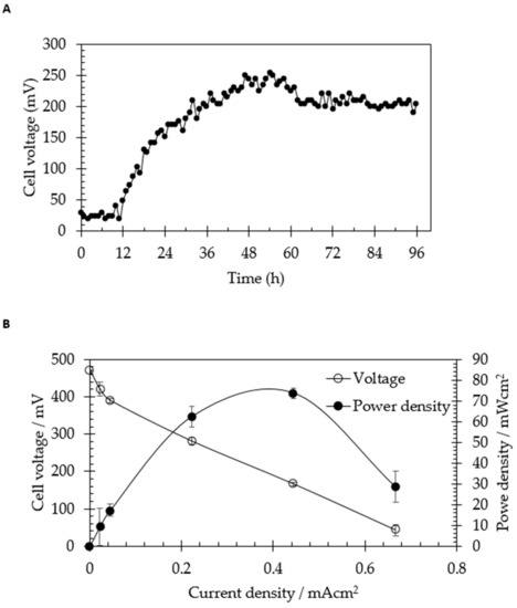 2.2. Preliminary Experiment: Bioelectricity Generation from Commercial Starch