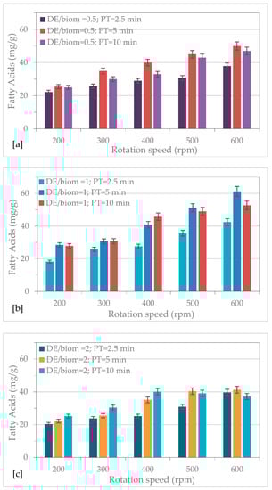 2.1. Effect of Mechanical Pre-Treatment on Fatty Acid Recovery