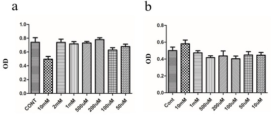In vitro cell viability of HUVEC cells in the presence of different amounts of AgNCs (a) and MOF-AgNCs (b).