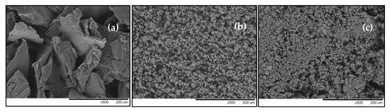 The surface morphologies of bentonite, chitosan, and CCB were obtained using SEM (S-3000N Hitachi, Tokyo, Japan) under a vacuum atmosphere of 1.33 × 10−6 mBar and voltage of 20 kV. Samples of CCB before and after adsorption were analyzed using FT-IR (Jasco FT-IR 410, Tokyo, Japan) with 64 scans and 4 cm−1 resolution within wavelength of 4000–400 cm−1.