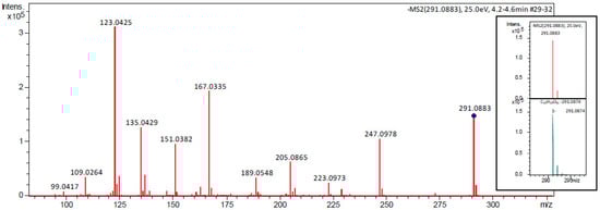 The ESI-QTOF Compact (Bruker Daltonics, Bremen, Germany) was used for the HRESIMS and MS/MS experiments. The instrument was calibrated with the tuning ESI-L mixture (Agilent Technologies, Santa Clara, CA, USA). Analysis of the obtained mass spectra was carried out using Data Analysis v4.2 software (Bruker Daltonics, Bremen, Germany). The main instrumental parameters were as follows: scan range, 50–2200