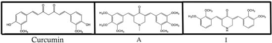 Figure 1. Structures of curcumin and analogs A and I. Previously published in Pignanelli et al. [24].