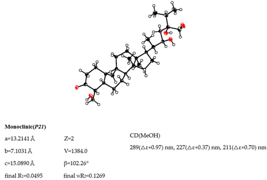 Crystal data: C30H50O6, MW = 506, Monoclinic, space group P2(1), Z = 4, a = 11.498(2) Å, b = 7.3583(14)Å, c = 31.322(6)Å, β=93.294(3)°, V = 2645.6(9)Å3, GOF = 1.034