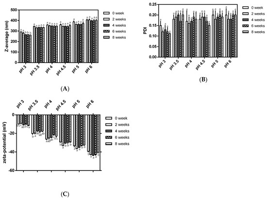 2.1.3. The Stability of Zein-Caseinate-Pectin Particles at Different Acidic pH Values