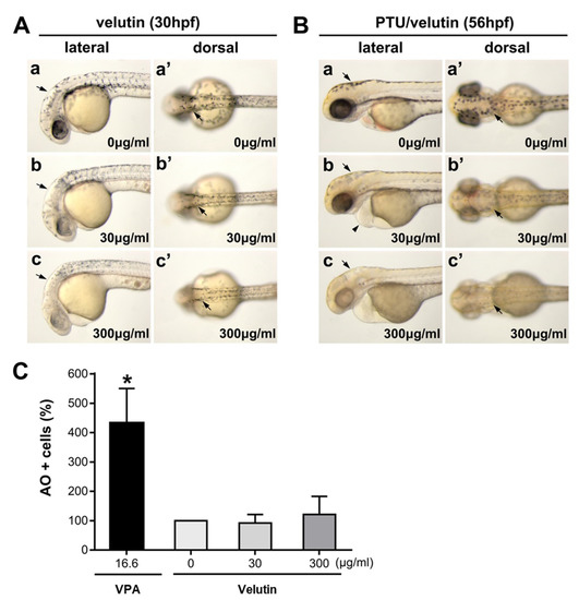 - Tucker, B.; Lardelli, M. A rapid apoptosis assay measuring relative acridine orange fluorescence in zebrafish embryos. Zebrafish 2007, 4, 113–116. [Google Scholar] [CrossRef] [PubMed]