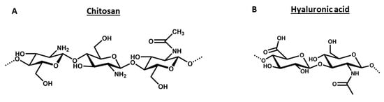 Chemical structures of chitosan (A) and hyaluronic acid (B).