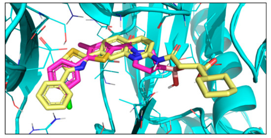X-ray structure of Ro19 (yellow) (PDB code: 5M2B [16]) and docked pose of compound 1 (magenta).
