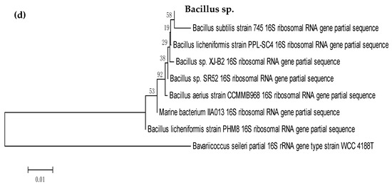 | HIP1 | Rod | Positive | Lysinibacillus sphaericus (KJ576904.1) | 99 |