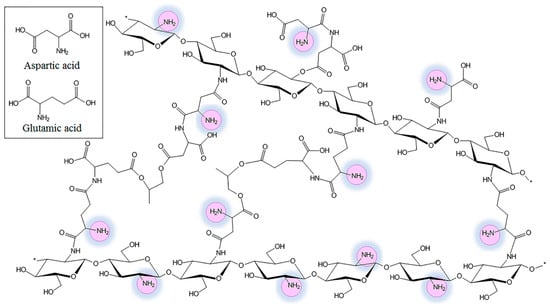 The proposed chemical structure of the crosslinked with glutamic and aspartic acid aerogels.