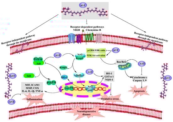 To the best of our knowledge, this is the first review regarding the role of each signaling pathway in the pathogenesis of neurodegenerative disorders, including PD, AD, NP, depression, brain and spinal cord injuries, aging, and autism, and it is the first review regarding the auspicious effects of AST against neurodegeneration pathways as well as clarifying novel AST delivery systems, all together.