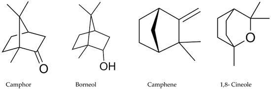- Chen, W.; Vermaak, I.; Viljoen, A. Camphor—A Fumigant during the black death and a coveted fragrant wood in ancient Egypt and Babylon—A Review. Molecules 2013, 18, 5434–5454. [Google Scholar] [CrossRef] [PubMed]