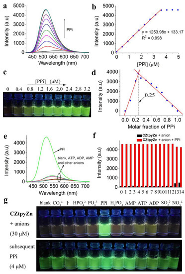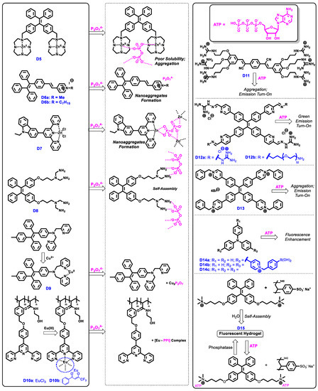 - Xu, H.R.; Li, K.; Jiao, S.Y.; Pan, S.L.; Zeng, J.R.; Yu, X.Q. Tetraphenylethene-pyridine salts as the first self-assembling chemosensor for pyrophosphate. Analyst 2015, 140, 4182–4188. [Google Scholar] [CrossRef] [PubMed]