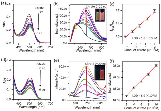 - Hang, Y.; Wang, J.; Jiang, T.; Lu, N.; Hua, J. Diketopyrrolopyrrole-Based Ratiometric/Turn-on Fluorescent Chemosensors for Citrate Detection in the Near-Infrared Region by an Aggregation-Induced Emission Mechanism. Anal. Chem. 2016, 88, 1696–1703. [Google Scholar] [CrossRef] [PubMed]