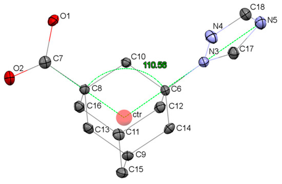 The structure of the compound trzadcH showing adamantane centroid (ctr) and ϕCctrN angle. H atoms are omitted.