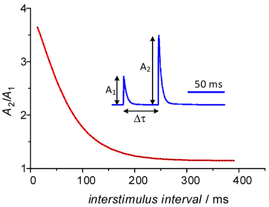An example of the paired-pulse facilitation observed in nervous system. Adapted from [31].
