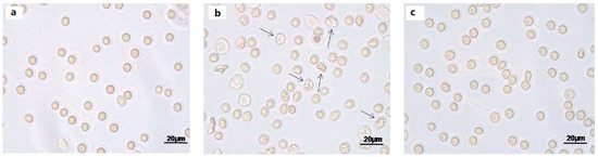 Erythrocytes, treated or not with either Mel alone (1 and 100 μM) or with 100 μM Mel ± 300 μM H2O2, were observed under a light microscope (Leica, 400×), at 90 min of SO4= medium incubation.