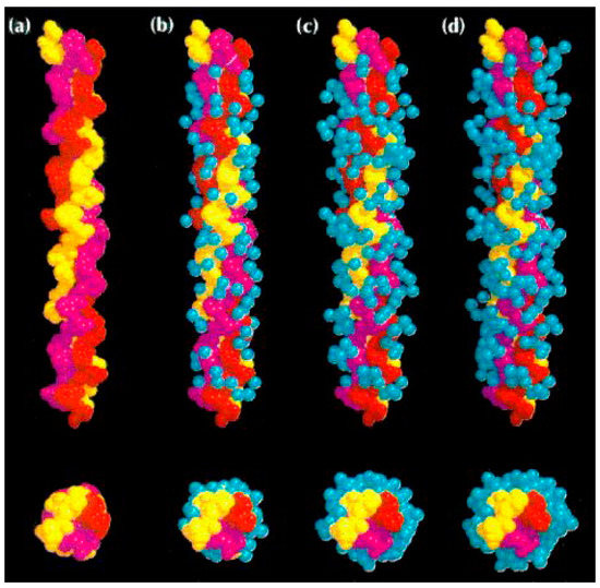 - Bella, J.; Brodsky, B.; Berman, H.M. Hydration structure of a collagen peptide. Structure 1995, 3, 893–906. [Google Scholar] [CrossRef]