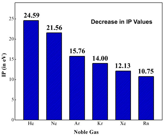 The plot of first ionization potential (IP; eV) against noble gas elements.