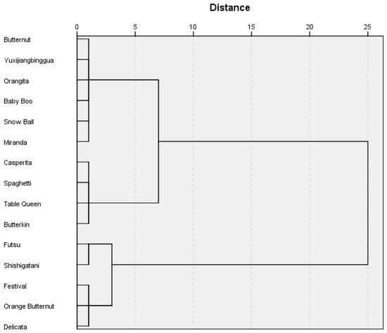 Dendrogram of studied pumpkin variety divisions.