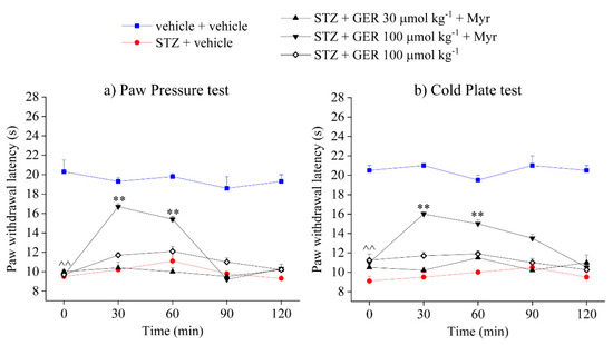 - Malcangio, M.; Tomlinson, D.R. A pharmacologic analysis of mechanical hyperalgesia in streptozotocin/diabetic rats. Pain 1998, 76, 151–157. [Google Scholar] [CrossRef]