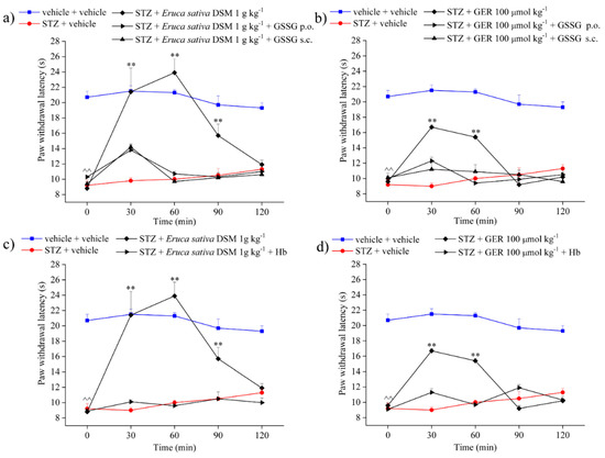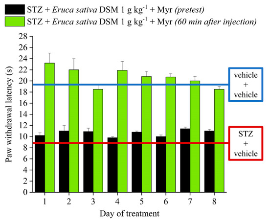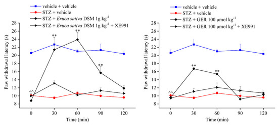 2.2. Effect of Eruca sativa Defatted Seed Meal and Glucoerucin on Diabetes-Induced Neuropathic Pain