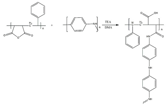 Grafting of polyaniline (PANI) on poly(styrene-alt-maleic anhydride) (PSMA) by Heydari et al. [8].