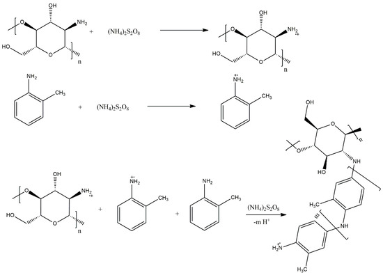 Grafting of poly(2-hydroxyaniline) on chitosan by El-Salam et al. in [7].