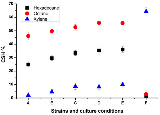 Crude oil is a mixture of a variety of simple and complex hydrocarbons which can be degraded by several indigenous microorganisms, each capable of breaking down a specific group of molecules. Numerous research studies concerning biodegradation/bioremediation of hydrocarbon pollutants have been done in recent years. Bacterial sp. of genera Achromobacter, Acinetobacter, Arthrobacter, Azoarcus, Brevibacterium, Cellulomonas, Corynebacterium, Flavobacterium, Marinobacter, Micrococcus, Nocardia, Ochrobactrum, Pseudomonas, Stenotrophomaonas, and Vibrio are reported as hydrocarbon destructors [4]. However, few thermophilic bacteria have been isolated and adapted to biodegradation, with most belonging to the Bacillaceae, such as Bacillus subtilis, Geobacillus pallidus, and Geobacillus thermodenitrificans [5,6,7,8]. Cell surface hydrophobicity (CSH) was long considered as a factor to promote adhesion of bacterial water-hydrocarbon interfaces [9]. Usually, higher cell hydrophobicity has been considered to help cells absorb hydrophobic substrates because improving cell surface hydrophobicity is one of the main approaches for facilitating the transport of hydrophobic substrates into cells [10].