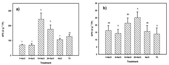 - Gharsallah, C.; Fakhfakh, H.; Grubb, D.; Gorsane, F. Effect of salt stress on ion concentration, proline content, antioxidant enzyme activities and gene expression in tomato cultivars. AoB Plants 2016, 8, plw055. [Google Scholar] [CrossRef]