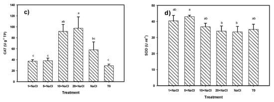 | 20 + NaCl | 2.16 b | 11.46 ab | 29.00 ab | 7.48 a | 46.43 abc | 79.09 b | 3.66 bc | 1.34 c | 91.8 c | 5266 BC |