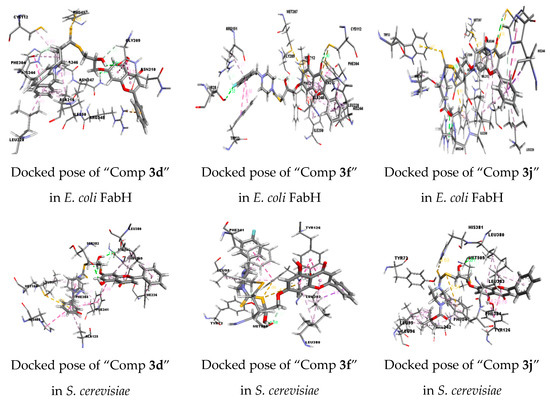 (3d, 3f, and 3j) docked into the binding site of E. coli FabH (1HNJ) enzyme and S. cerevisiae (5EQB) with Discovery studio client 4.2.