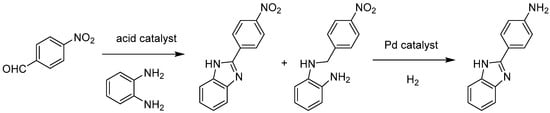 Synthesis of 2-(4-aminophenyl)-1H-benzimidazole via tandem catalysis involving acid catalysis and catalytic hydrogenation of nitro groups using Pd@MIL-101(Cr) as bifunctional catalyst.