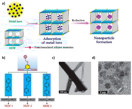 - Rösler, C.; Fischer, R.A. Metal-organic frameworks as hosts for nanoparticles. CrystEngComm 2015, 17, 199–217. [Google Scholar] [CrossRef]