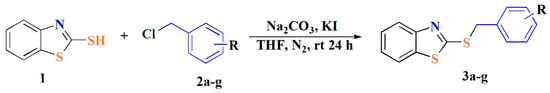 Analysis of compounds 2-(benzylthio)benzo[d]thiazole (3a) [], 2-(4-chlorobenzylthio)benzo[d]thiazole (3b) [], 2-(4-methoxybenzylthio)benzo[d]thiazole (3c) [], 2-(4-fluorobenzylthio)benzo[d]thiazole (3d) [], and 2-(3-fluorobenzylthio)benzo[d]thiazole (3e) [] are coherent with those reported in the literature.