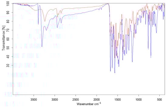 IR spectra of the L compound before (blue) and after (red) the addition of Co2+.