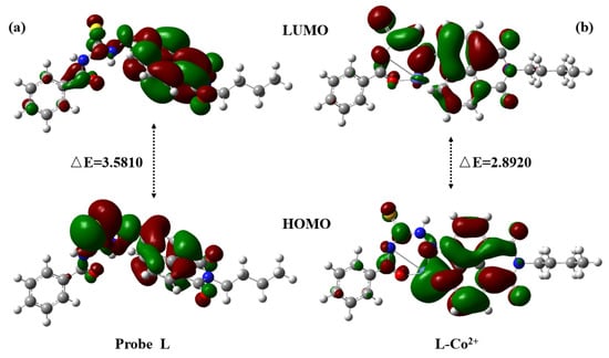 Frontier molecular orbital of (a) the L probe and (b) L-Co2+.