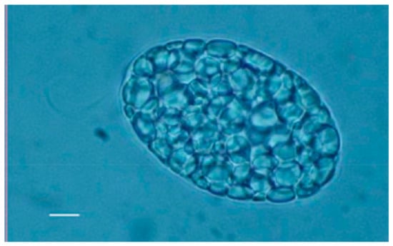 Optical microscopy image of WZSL mutant filled up with paramylon granules. Bar: 10 μm.