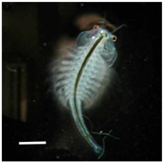 Optical microscopy image of Artemia sp. adult. Bar: 1 mm.