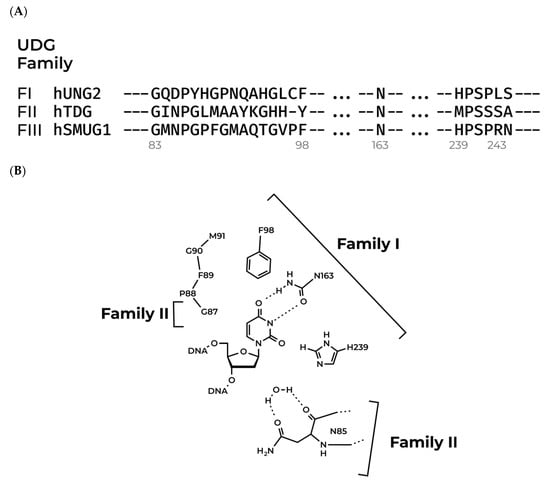 - Schormann, N.; Ricciardi, R.; Chattopadhyay, D. Uracil-DNA glycosylases—Structural and functional perspectives on an essential family of DNA repair enzymes. Protein Sci. 2014, 23, 1667–1685. [Google Scholar] [CrossRef]