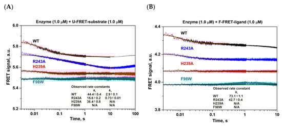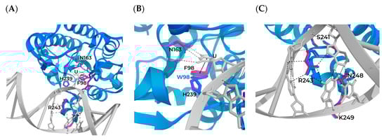 Iakovlev, D.A.; Alekseeva, I.V.; Vorobjev, Y.N.; Kuznetsov, N.A.; Fedorova, O.S. The Role of Active-Site Residues Phe98, His239, and Arg243 in DNA Binding and in the Catalysis of Human Uracil–DNA Glycosylase SMUG1. Molecules 2019, 24, 3133. https://doi.org/10.3390/molecules24173133