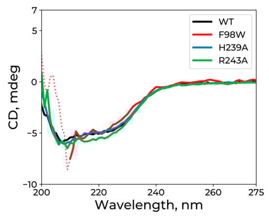 3.2. CD Analysis of WT hSMUG1 and of the Mutants