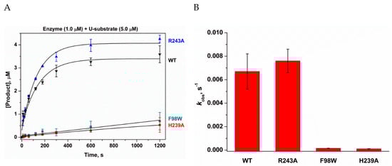 Sample Availability: Samples of the F98W, H239A, and R243A hSMUG1are available from the authors. |