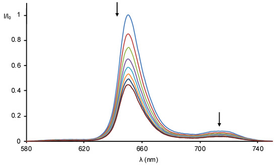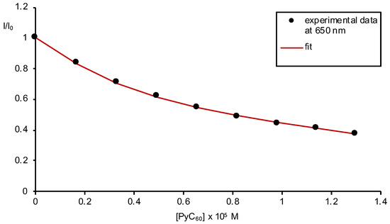 where I is the fluorescence intensity, ΦPor and ΦPor-Ful are constants associated with the emission quantum yields of the porphyrin derivative and of the complex formed, respectively [80].