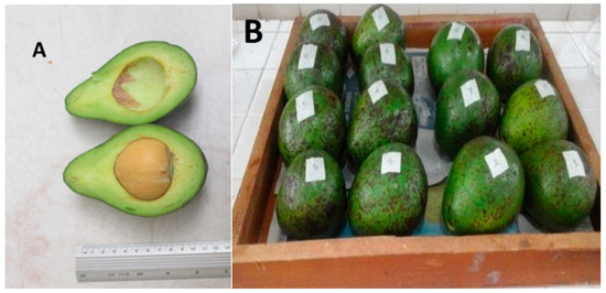 Avocado (Persea americana) (A) pulp and (B) fruit from Sandoná (Nariño, Colombia).