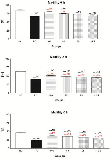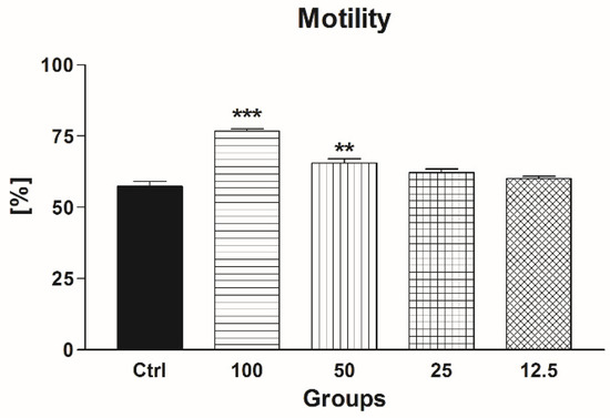 4.3. Spermatozoa Motility Assessment