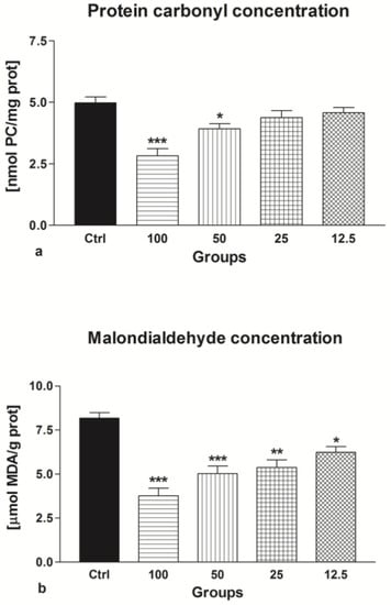4.7. Oxidative Damage Assessment
